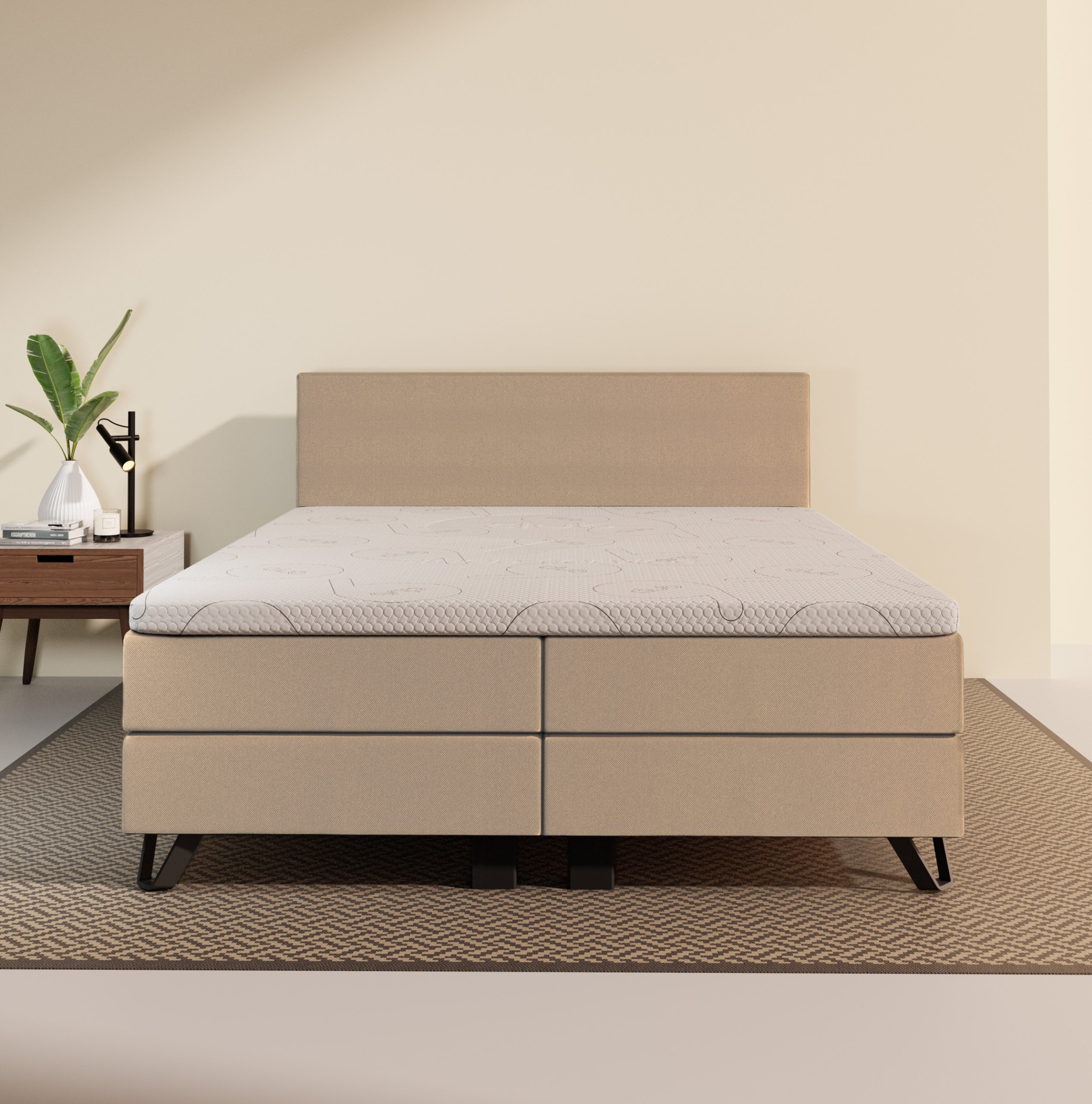 Bovenop deze matrassen ligt een luxe 6 cm dikke topper met een Comfort HR-laag. Deze topper biedt perfecte ondersteuning en geeft je bed een chique uitstraling. Dankzij de anti-slip laag blijft alles netjes op zijn plek. Geniet van luxe, comfort en stabiliteit, nacht na nacht, met de Boxspring Deluxe. Transformeer je slaapkamer in een oase van rust en comfort!