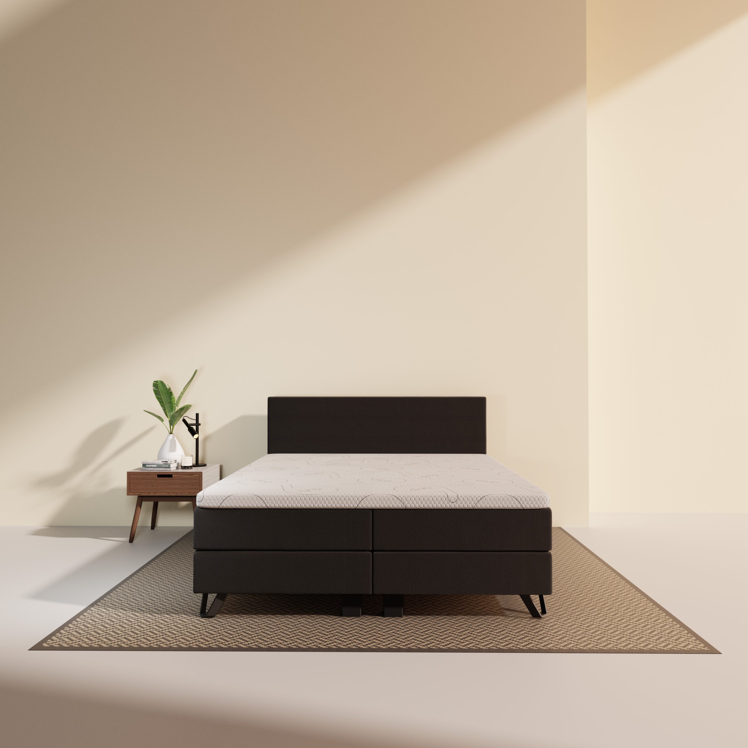 De mat zwarte pootjes van 10 cm geven je bed een stijlvolle en moderne uitstraling. De hoogwaardige materialen en luxe afwerking geven het een chique uitstraling. Een echte eyecatcher!